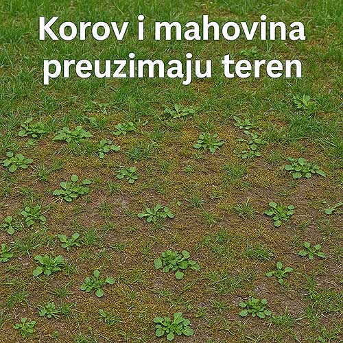 - Vremenski uslovi – suša, letnje vrućine, jake kiše ili mraz – sve to slabi travu i otvara prostor za korove.