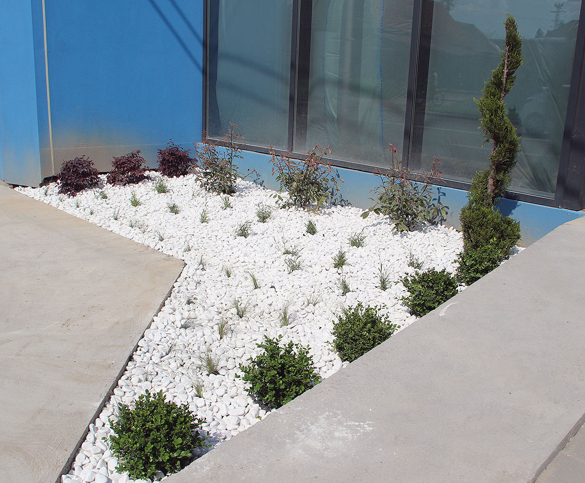 Na zemlji ide agrotekstil, preko njega beli oblutak – funkcionalno i estetski. Ispod – red, iznad – lepota.