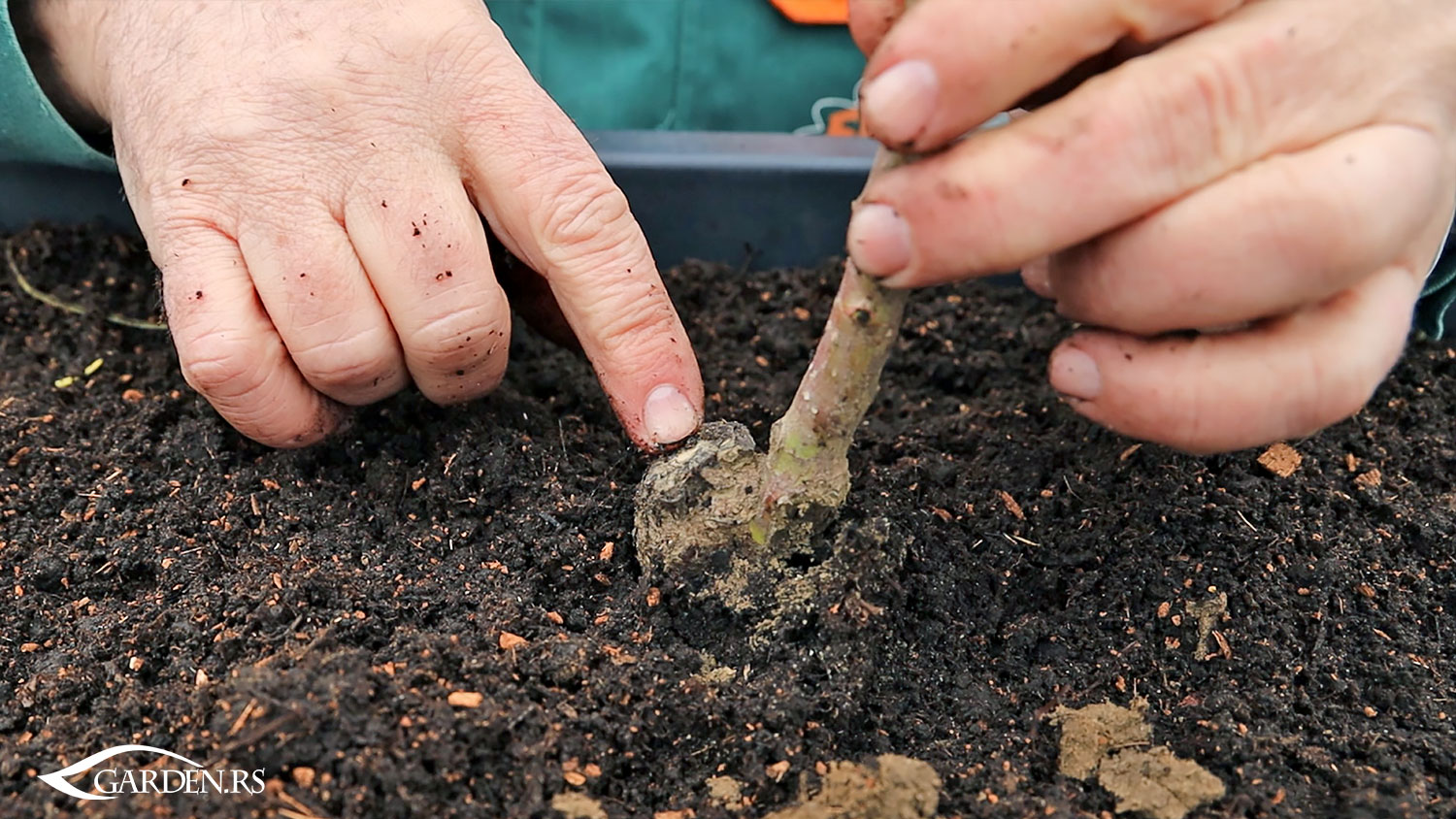 Ružu posadite tako da mesto donjeg kalema ostane iznad površine zemlje. Okrenite sadnicu tako da grančice krošnje budu okrenute u širinu žardinjere - na taj način će kasnije cvetati ravnomernije i lepše.