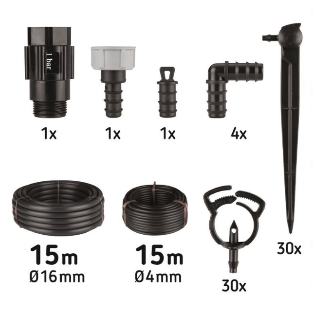 Sve što vam je potrebno za navodnjavanje saksija dolazi u ovom super praktičnom cegeru, a postavljanje je vrlo jednostavno.